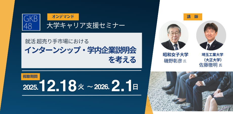 GKBでは、12月2日(火)に、高校大学・学校教職員・企業人事担当者対象セミナー『インターンシップ・学内企業説明会を考える』を開催します。